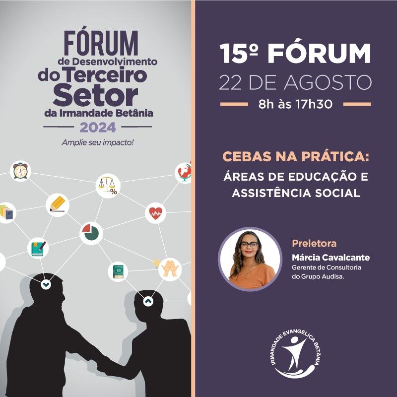 O 15º Fórum de Desenvolvimento do Terceiro Setor será centrado no tema "CEBAS na prática: áreas de educação e assistência...