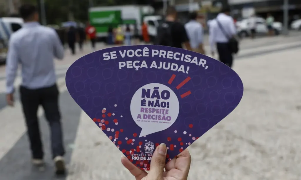 “Não é não! Respeite a Decisão”, com essas palavras, o Governo do Estado do Rio de Janeiro promoveu uma campanha que combate o assédio e a importunação sexual contra mulheres durante o Carnaval. A ação foi no Largo da Carioca, na região central da cidade do Rio, com distribuição de material informativo.