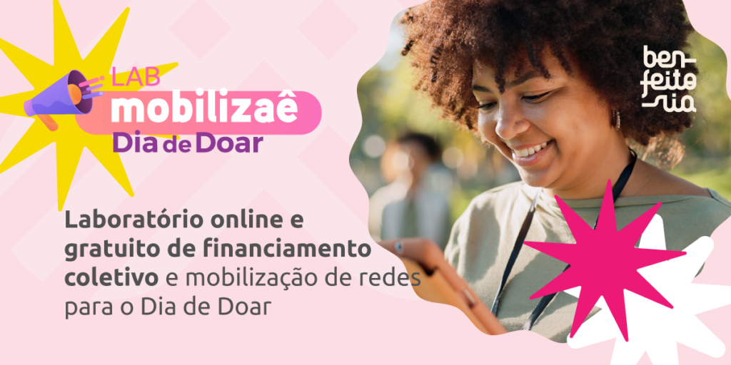 Em uma ação especial para o Dia de Doar, a plataforma Benfeitoria oferece capacitação online e gratuita em financiamento coletivo e mobilização de redes. Intitulado “Lab Mobilizaê – Dia de Doar”e realizado entre os dias 4 e 7 de novembro, 19h30 às 21h, pela plataforma Zoom, o programa beneficia iniciativas nas áreas de cultura, educação, sustentabilidade e direitos humanos, entre outras. As inscrições ficam abertas neste link até amanhã, 31 de outubro.