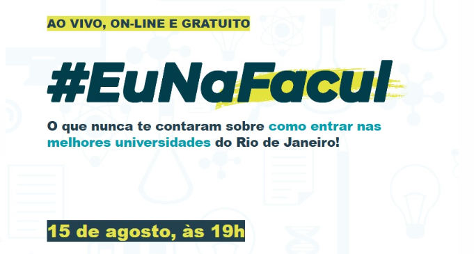 Para auxiliar adolescentes e jovens nesta jornada rumo à graduação, será realizada, no próximo dia 15/08, às 19h, no YouTube, uma live com o nome #EuNaFacul, trazendo informações exclusivas sobre ENEM, Sisu, Fies, Prouni, auxílios, bolsas e programas de acesso estudantil. A iniciativa tem como objetivo apresentar um guia completo para quem sonha em entrar no Ensino Superior e aproveitar todas as oportunidades que as principais universidades do Estado do Rio de Janeiro oferecem.