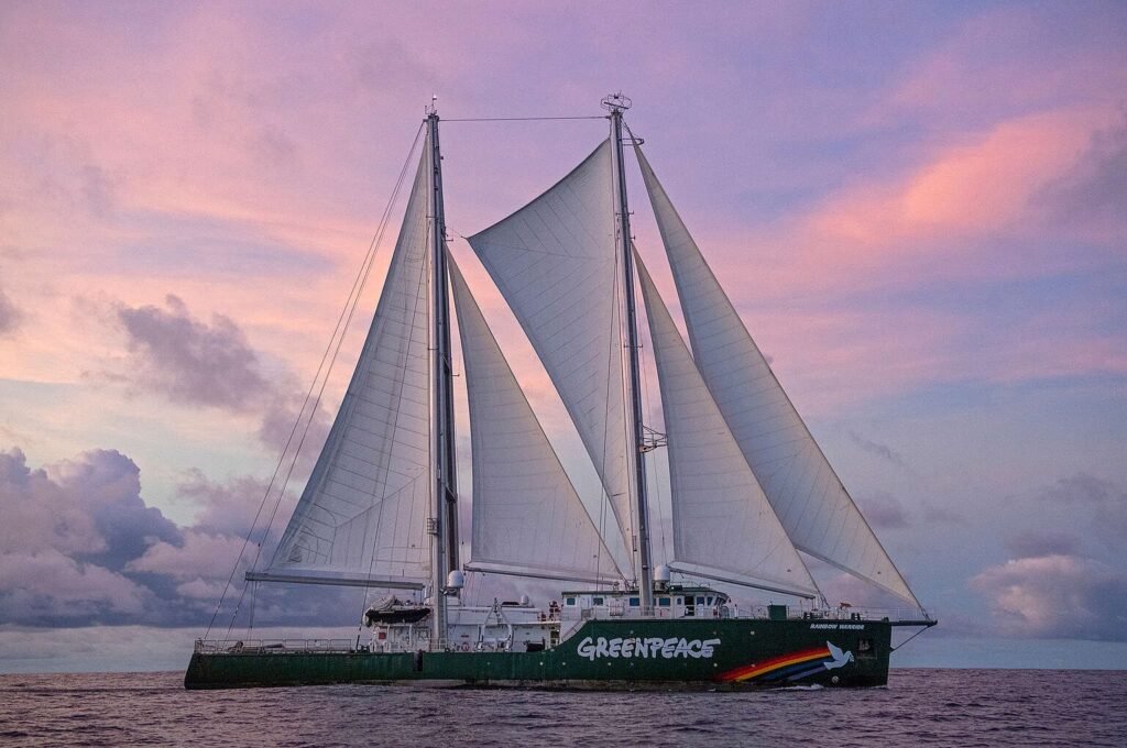 Construído em 2011 com design sustentável e movido principalmente por velas, o Rainbow Warrior representa o compromisso do Greenpeace com práticas de baixo impacto ambiental. Seu casco reduz o consumo de combustível, as águas residuais são tratadas a bordo e o uso de energia é controlado por um sistema eficiente de LED.