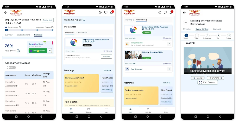 O programa de empregabilidade da Fundação Wadhwani faz parte de sua iniciativa global Wadhwani Skilling, que busca capacitar jovens de várias partes do mundo a conseguir empregos que propiciem uma carreira de alto valor. Por meio dele, os jovens podem treinar sua oratória, a forma como se apresentam, melhorar habilidades de autoconhecimento, gestão de tempo e até mesmo aprimorar as habilidades em softwares importantes como Word, Excel e PowerPoint. Ao todo, são trabalhadas mais de 100 habilidades, reunidas em 14 macro-competências, todas com direito a certificação.